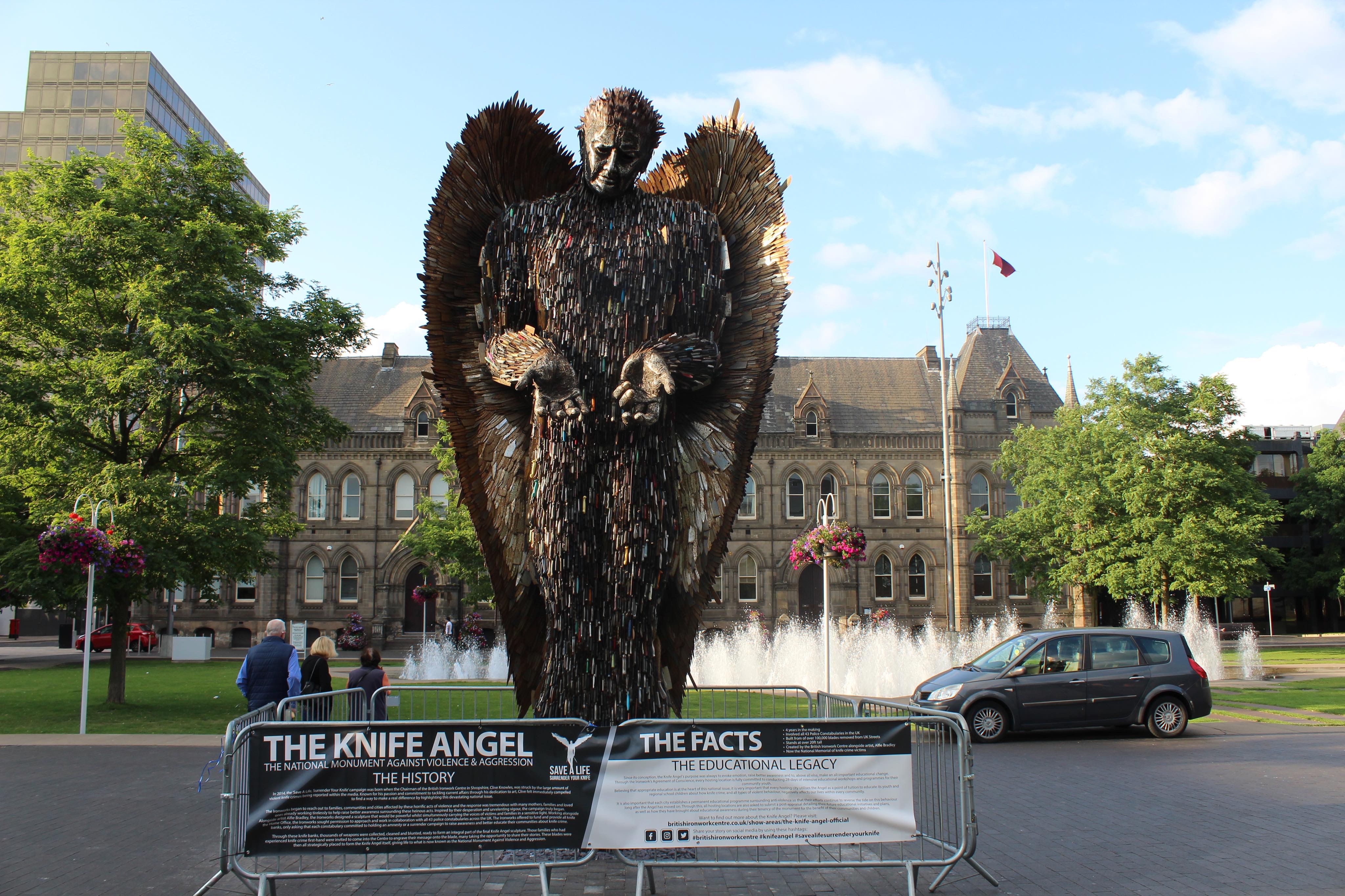 The Knife Angel stands at 27ft And is made out of 100,000 knives that have been used in crimes or handed in during amnesty periods.The wings are engraved with the names of the victims of knife crimes. The statue was created by artist Alfie Bradley and you’ll be able to see this at Centre Square until Monday 2nd September 2019.
